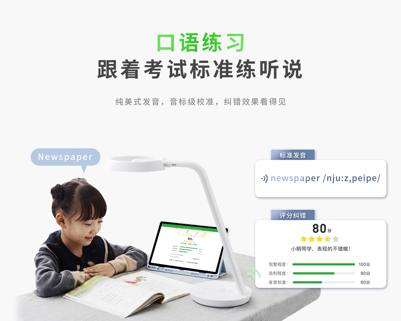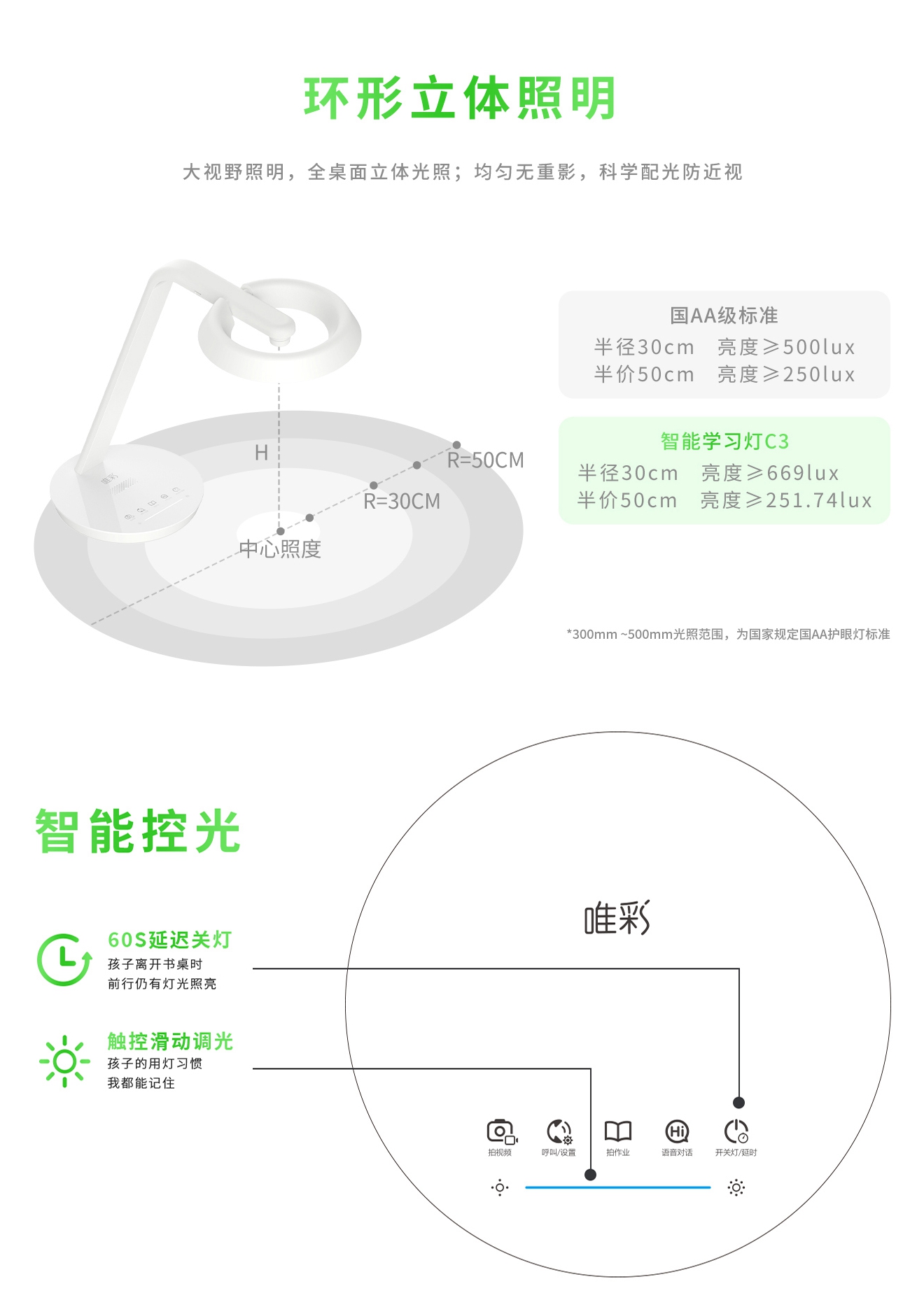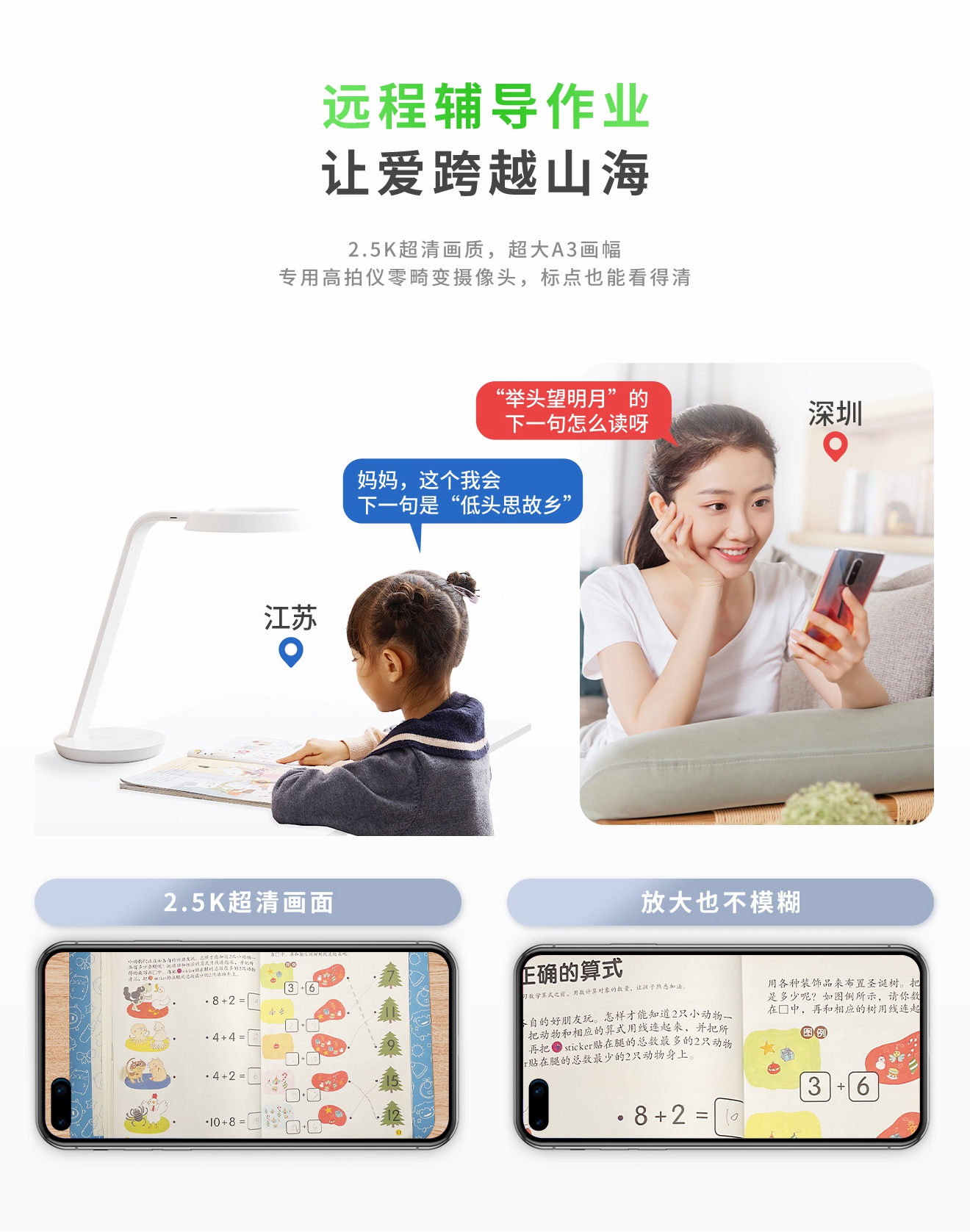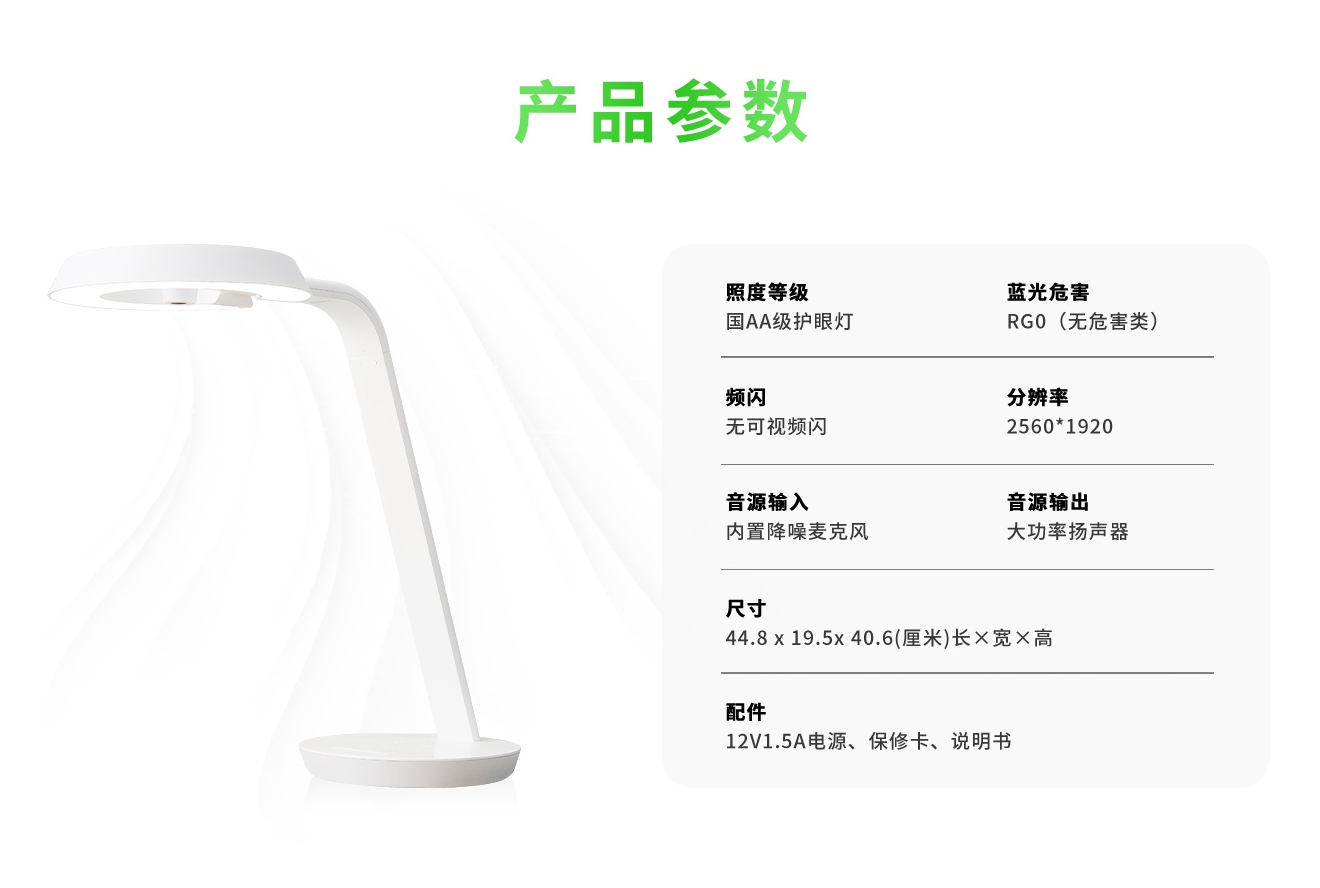 500萬零畸變高清攝像頭,國AA級護眼燈,